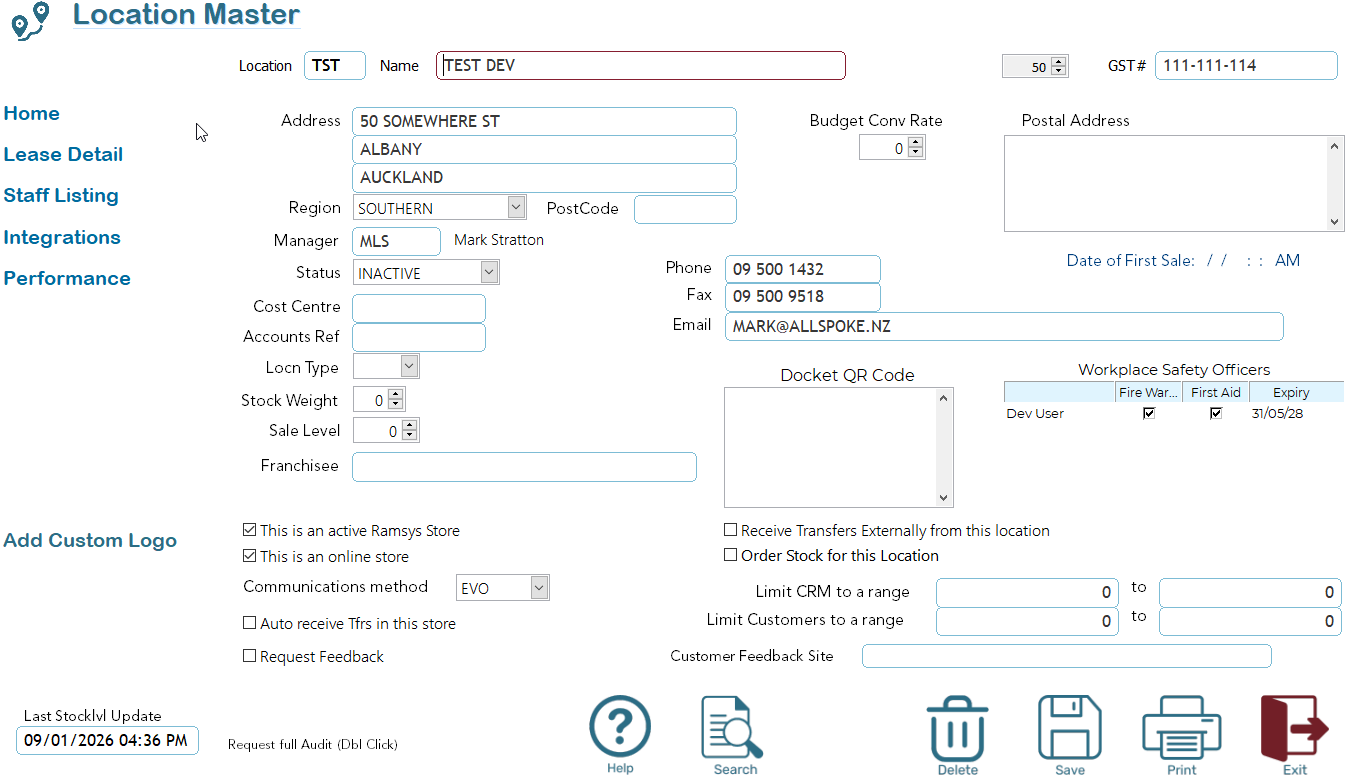 Sometimes you may wish to display a different logo to the one set in the system for a specific location. If this is the case add the custom logo here.