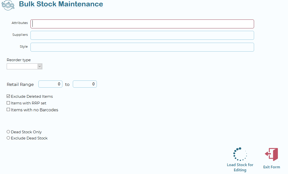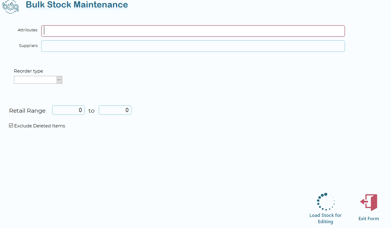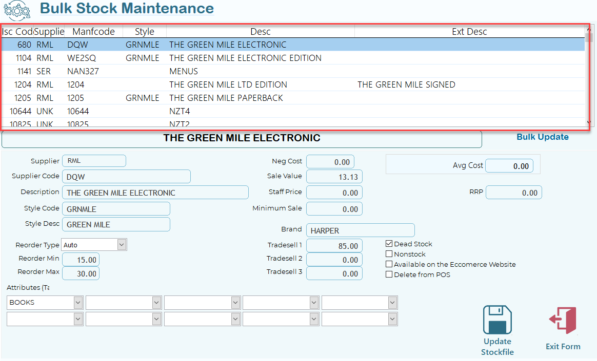 Bulk Stock Maintenance is a POS premium feature only and is found under the Maintenance Menu.