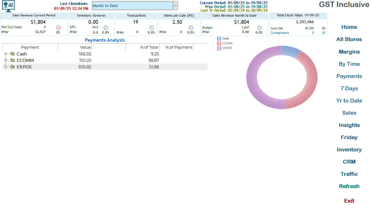 - Payment Method: Type of payment (e.g., Account, Cash, Cheque, EftPOS, etc.).